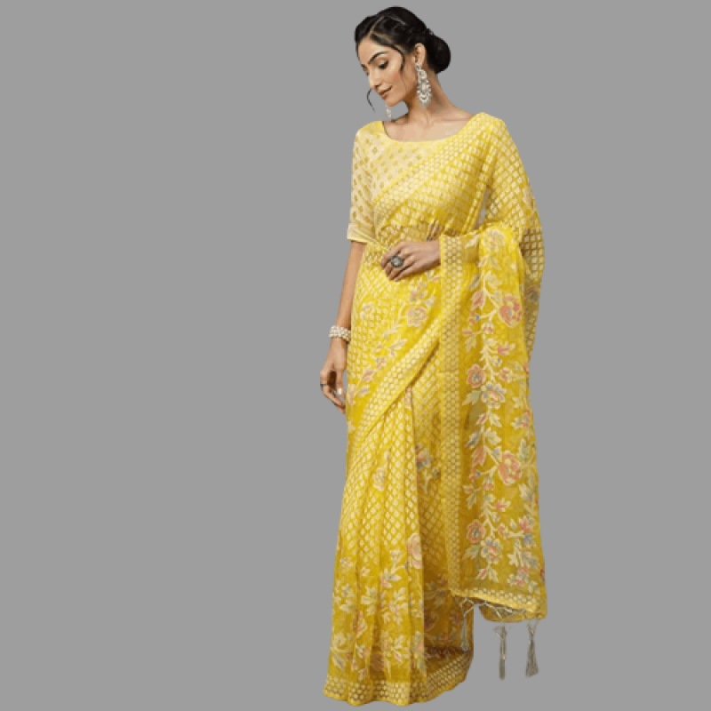 • Saree Color :- Yellow || Blouse Color :- Yellow