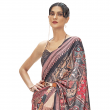 AKHILAM Women's Kalamkari Crepe Digital Print Saree With Unstitched Blouse Piece