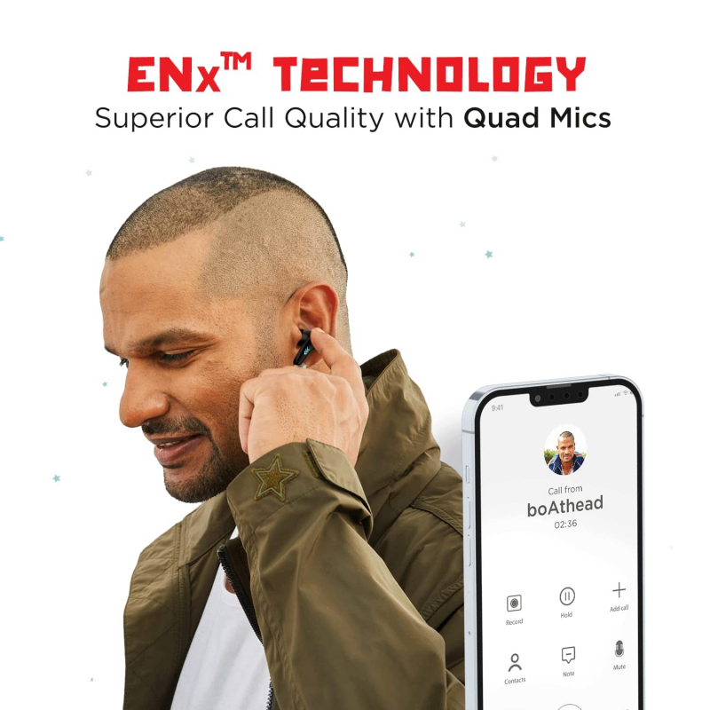 • Clear Voice Calls- Be heard clearly across voice calls without those usual interruptions, with the ENx Tech-enabled quad mics that cancel out unwanted background noises during calls, on Airdopes 190.
