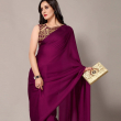 Purple Black Embellished Sequinned Satin Saree