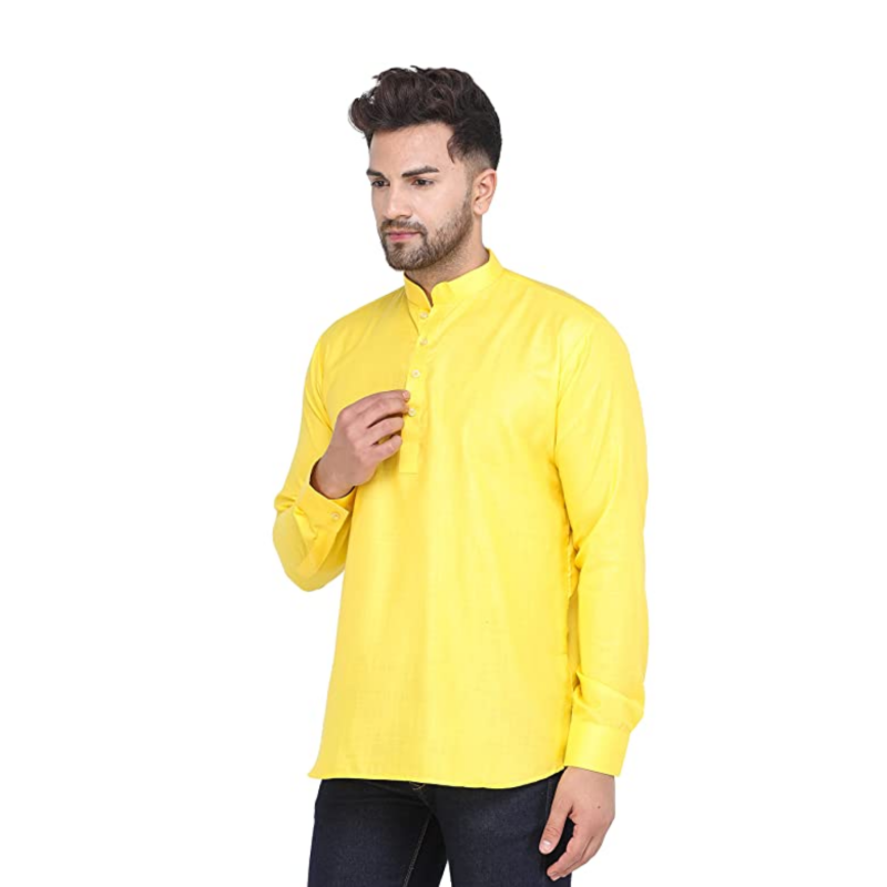 • Collar: Mandarin Collar, Sleeves: Full, Fit type: Regular/ Comfort, Length: Mid Thigh length Kurta